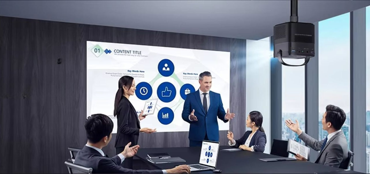 Absolutely! Vision Beam™ Max connects easily to laptops via HDMI or wirelessly, making it a versatile tool for both entertainment and professional use.