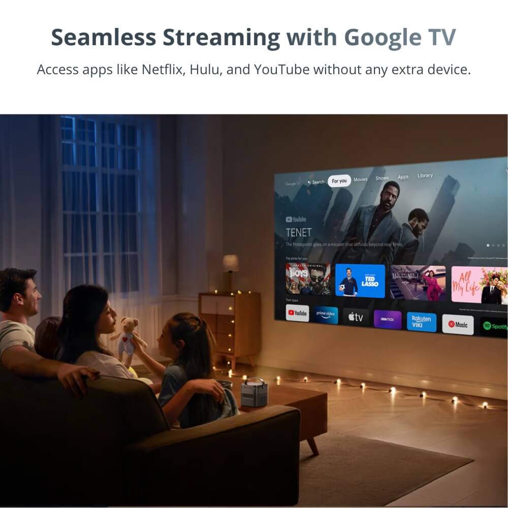 Vision Beam™ Max comes with Google TV built-in, granting you access to Netflix, YouTube, Prime Video, and over 5,000 apps, all without extra devices.